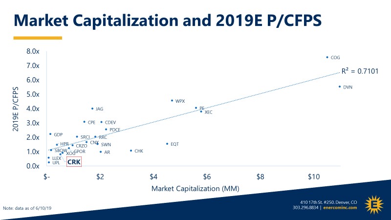 With at total after market valuation in excess of $4 billion, we would expect CRK to participate in some multiple expansion.