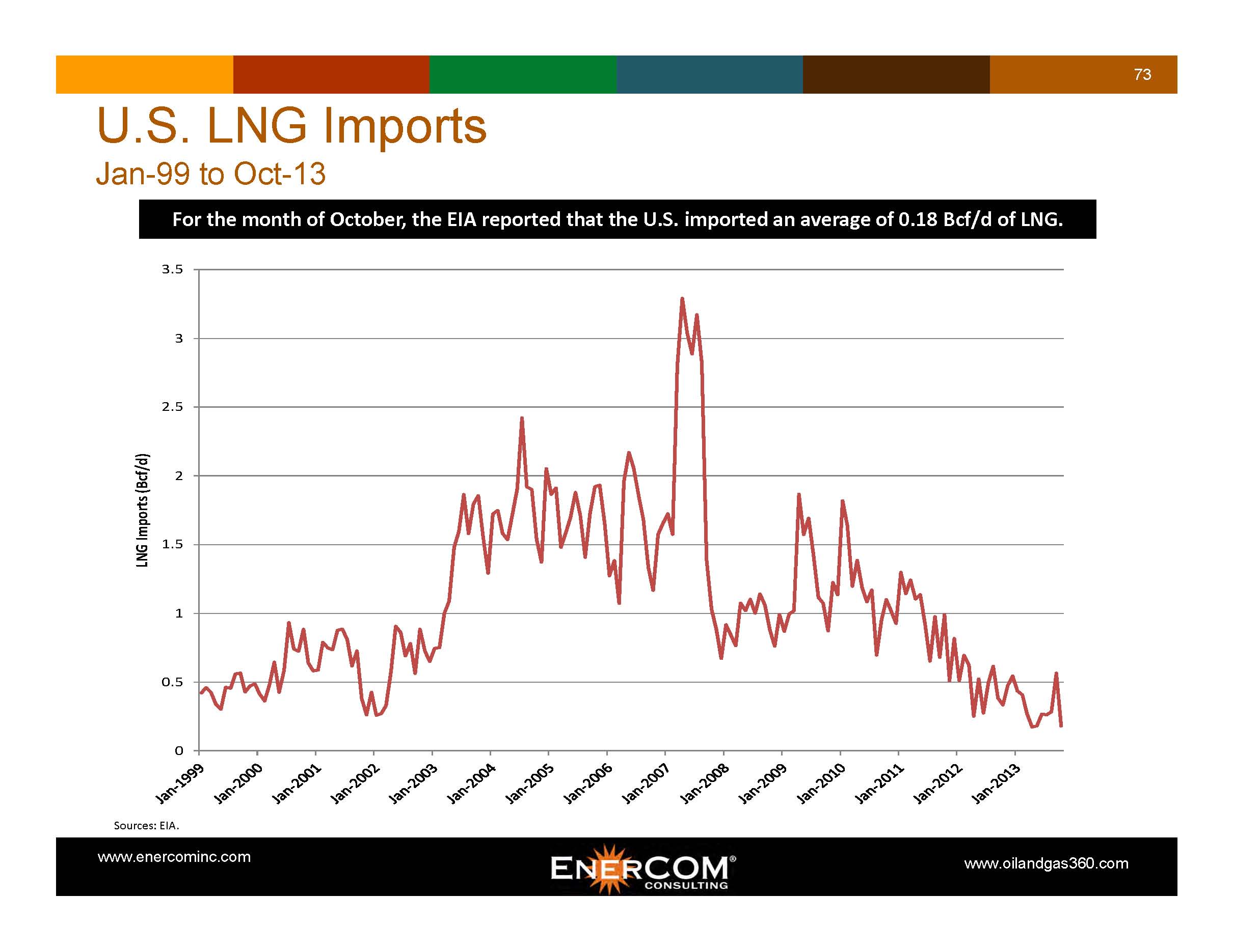 For the month of October 2013 (the most recent data point), the EIA reported that U.S. LNG imports averaged of 0.18 Bcf/d.