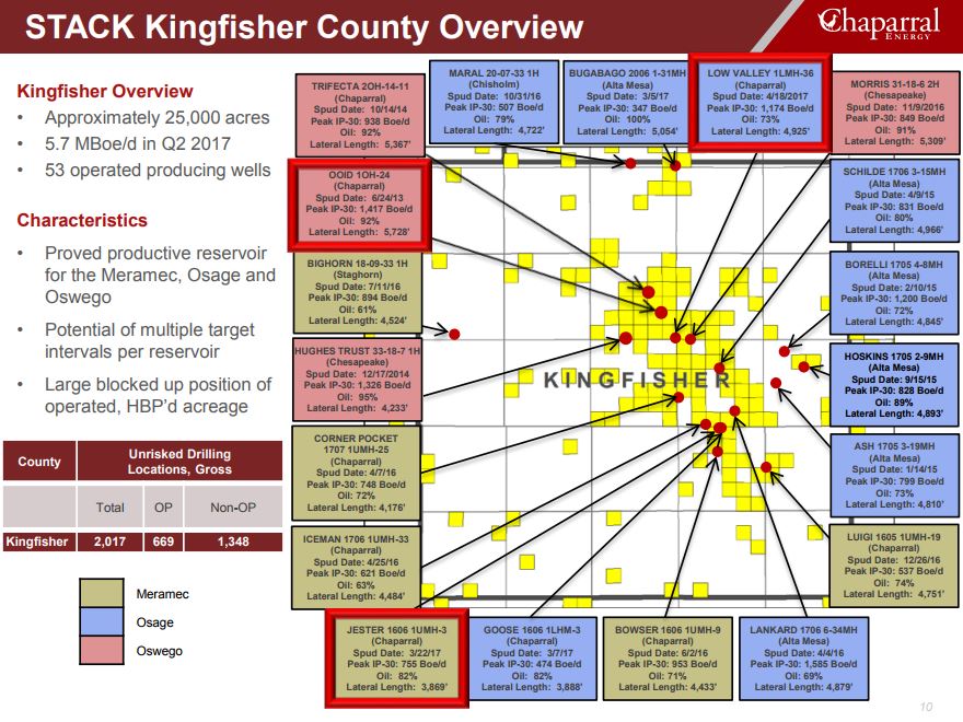 “We are pleased to announce that the close of this sale effectively completes Chaparral’s transition to a pure-play STACK operator,” said Chaparral CEO Earl Reynolds. “Our transition away from EOR operations will allow us to focus our capital and operational activity almost exclusively on accelerating the development of our more than 3,500 STACK drilling locations across our 110,000 net acre position in Kingfisher, Garfield and Canadian counties.”
