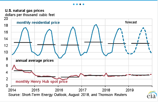 Dry natural gas production was 81.8 billion cubic feet per day (Bcf/d) in July, up 0.4 Bcf/d from June. EIA forecasts dry natural gas production will average 81.1 Bcf/d in 2018, up by 7.5 Bcf/d from 2017 and establishing a new record high. It is expected that natural gas production will rise again in 2019 to 84.1 Bcf/d.