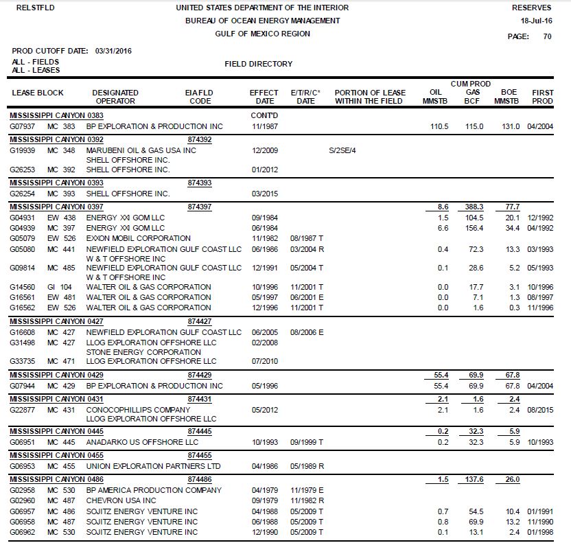 If you look at the operators listed in BOEM’s 200-page directory of leases and leaseholders—the Gulf of Mexico Region Operators Directory–it’s like reading from the pages of an oil and gas history book: Anadarko, Apache, BHP, BP, Chevron, ConocoPhillips, Devon, Energy XXI, ExxonMobil, Forest Oil, Hess, Hunt, McMoRan, Murphy, Newfield, Noble, Pioneer, Shell, Texaco, Union Oil, W&T, XTO, Zapata. That’s just a small sample from the first five pages.
