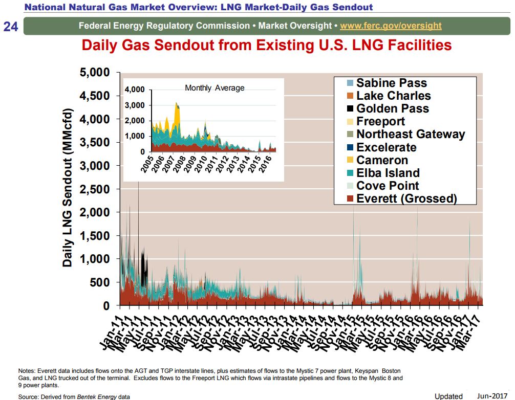 U.S. first-mover Cheniere has been exporting gas since early 2016, but what happens when you add 6 more LNG projects under construction that represent total capacity of 13.5 Bcf/day of U.S. natural gas heading to global destinations, with first shipments in ’18 and ‘19 ?