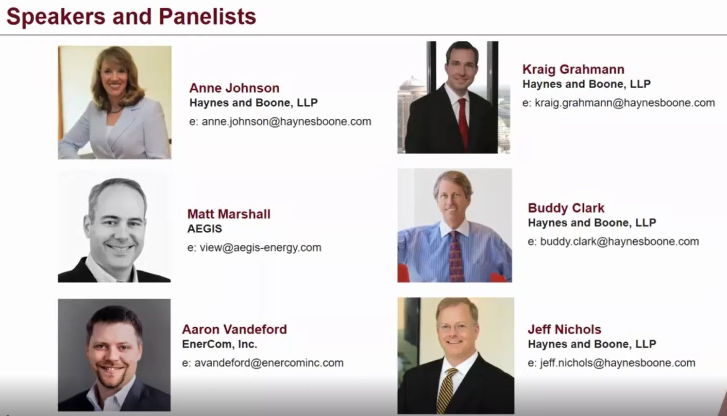 Haynes and Boone, AEGIS and EnerCom welcome you to a weekly series of webex meetings to discuss business and legal issues erupting in the oil and gas world, including bankruptcy and restructuring.