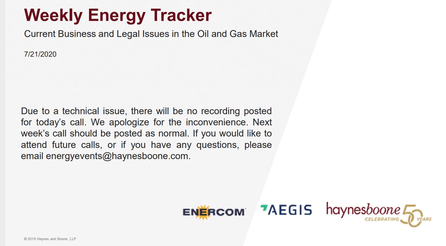Haynes and Boone, AEGIS and EnerCom welcome you to a weekly series of webex meetings to discuss business and legal issues erupting in the oil and gas world.