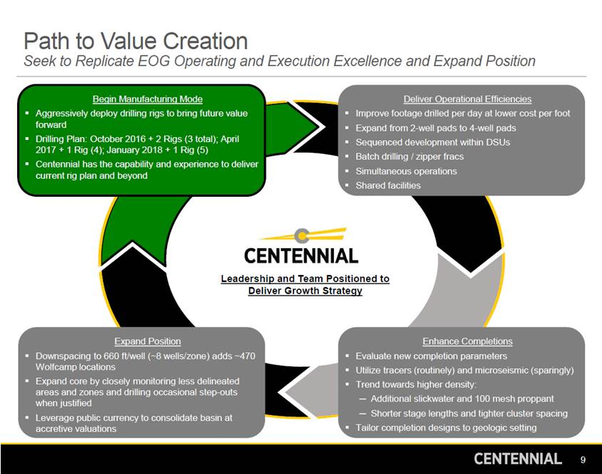 At the closing, Centennial Resource Holdings also entered into an amendment to its credit agreement to, among other things (i) permit the transaction, (ii) reflect the repayment in full of all term loans thereunder, (iii) increase the borrowing base from$140,000,000 to $200,000,000, (iv) increase the interest rate to LIBOR plus 2.25% – 3.25%, and (v) require Centennial to have sufficient liquidity and satisfy a maximum leverage ratio in order to make dividends. As of October 11, 2016, Centennial has no outstanding debt and approximately $100 million of cash on hand.