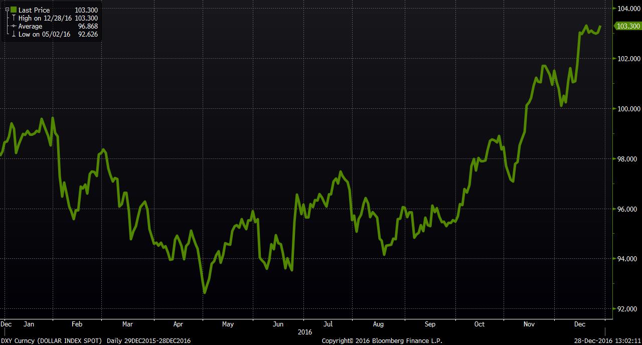 “The dollar will probably strengthen in 2017, but not at the same rate that [we saw earlier this year.] The recent strength is a knee-jerk reaction to a Fed that is clearly going to be tightening,” Hogan added, saying that the currency markets usually do a good job of self-correcting.